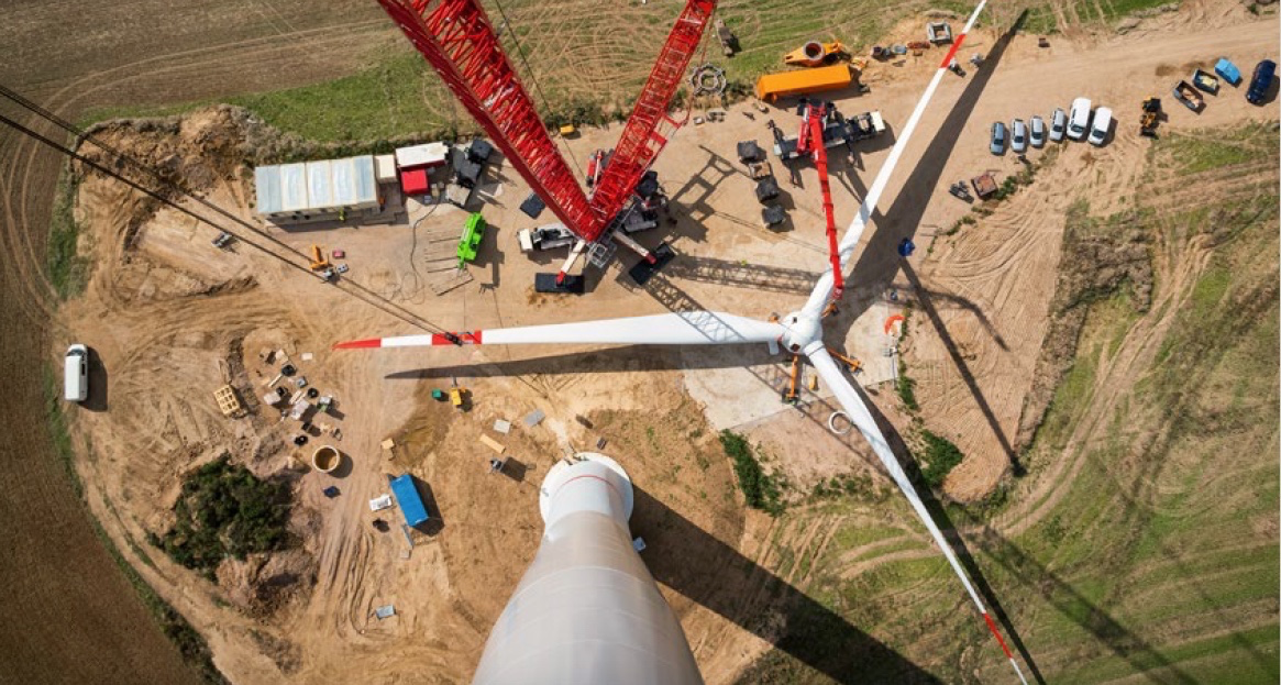 Parc éolien en construction, vu de la nacelle d’une éolienne