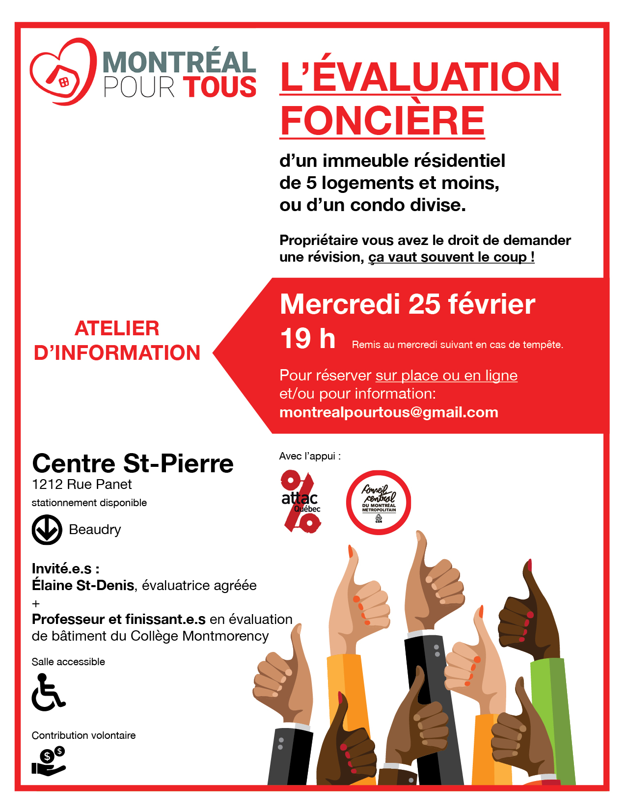 1-Faites circuler l’invitation à l’Atelier d’information sur l’évaluation de votre résidence du mercredi 25 février