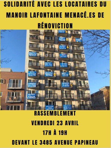 Nous avons contribué à faire reculer de grands propriétaires spéculatifs par notre appui à l’action concertée de plusieurs groupes: Schiller-Lavy qui a réduit sa hausse de loyer pour permettre au libraire Welch de demeurer sur la rue St-Viateur; Henry Zavriyev qui a dû respecter les jugements du tribunal et cesser de harceler et expulser des locataires du Mont-Carmel. Nous avons été aussi solidaires avec les expulsés du Manoir Lafontaine.